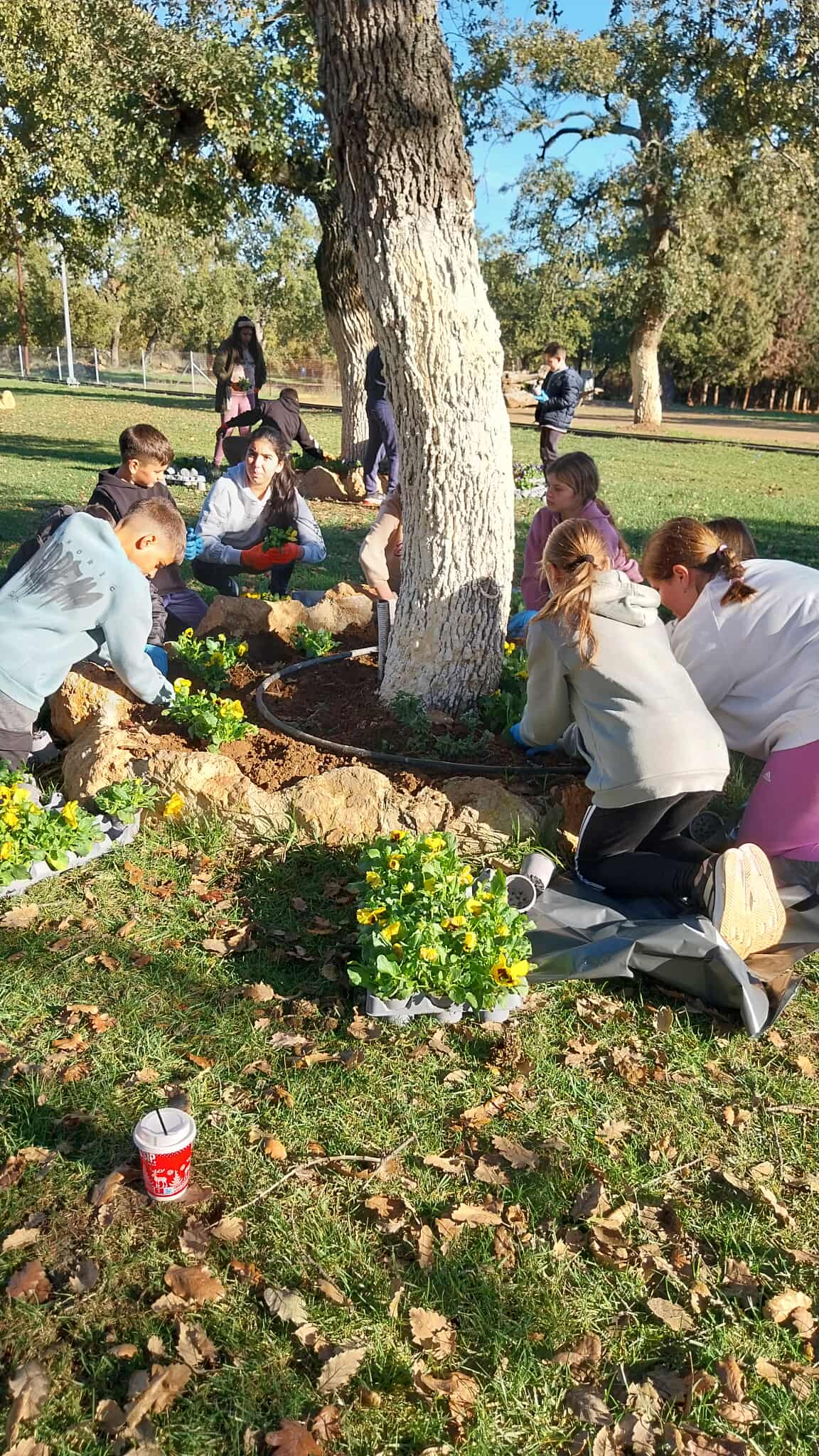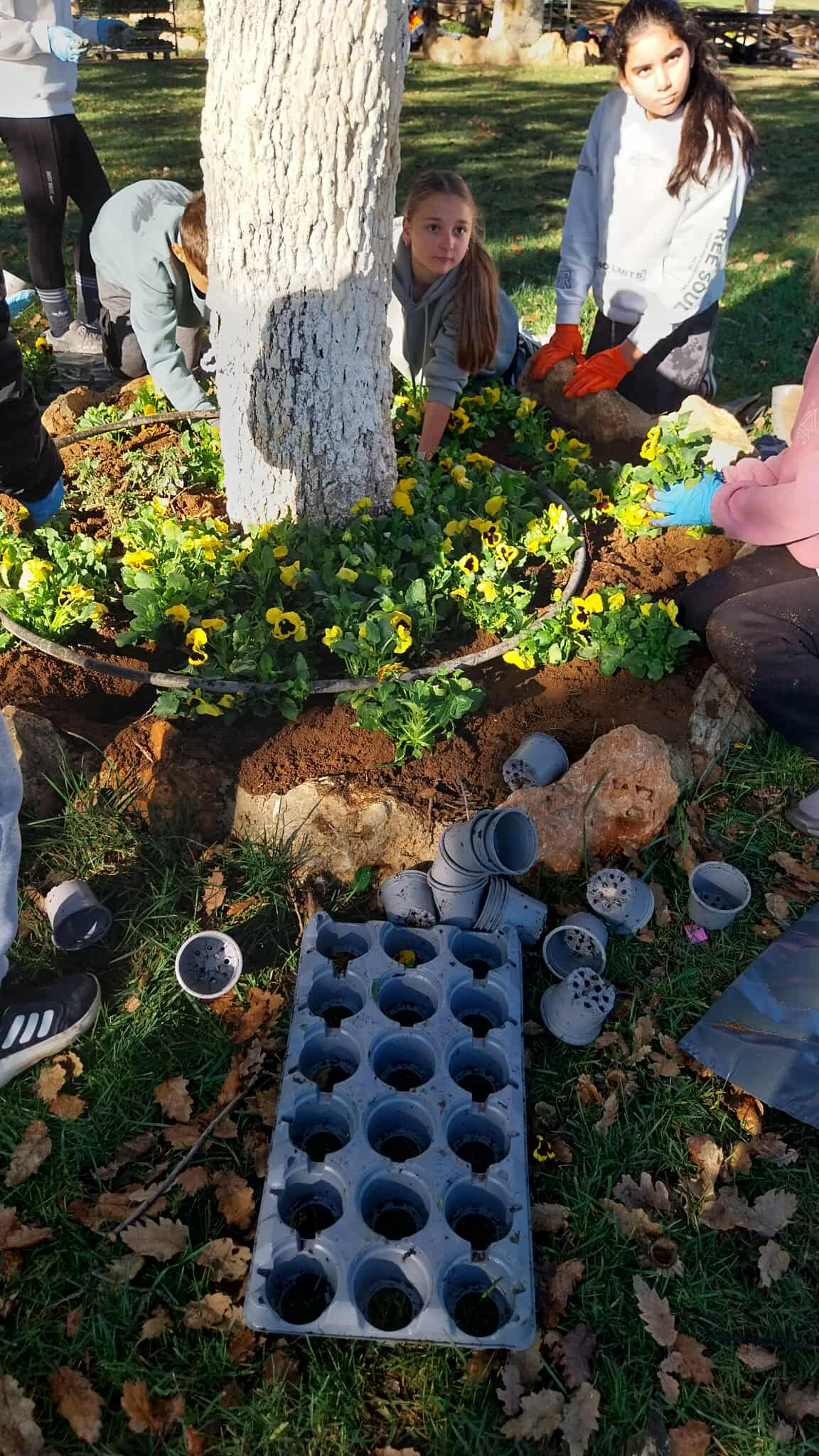 Τα παιδιά φύτεψαν λουλούδια σε παρτέρια γύρω από τα δέντρα στα πλαίσια του προγράμματος “Μικρά Παιδιά – Μεγάλοι Φύλακες του δάσους” που υλοποιούν η Ε και ΣΤ Τάξεις του 5ου Δημοτικού Σχολείου, με την υποστήριξη του Δήμου Αλμυρού.
